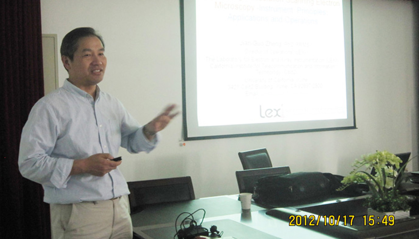 1017下午,美国加州大学尔湾分校博导郑建国教授应邀请来yl23411永利集团官网机械工程学院作题为“极高(亚纳米)分辩率扫描电镜的结构、原理及应用”的学术报告。