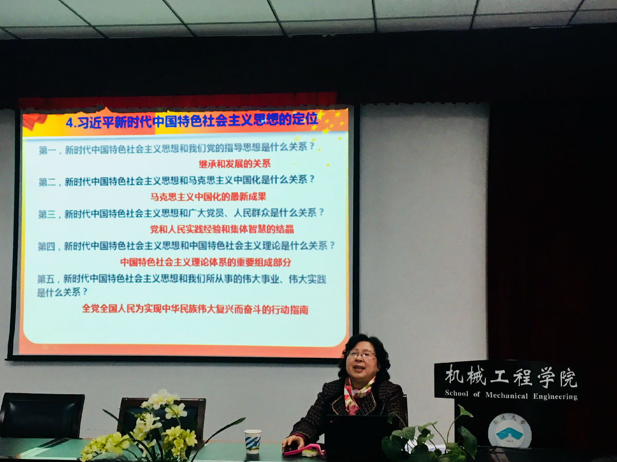 为深入学习贯彻党的十九大精神,12月6日下午,机械工程学院特邀马克思主义学院副院长蔡娟教授来院作十九大宣讲报告。我院全体教职员工和学生党员聆听了报告会,院党总支书记周一丹主持会议。