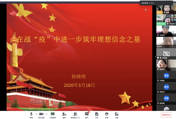 3月18日下午,机械工程学院学生党支部在线开展了“守初心、担使命、扛责任、抗疫情”线上主题党日活动。