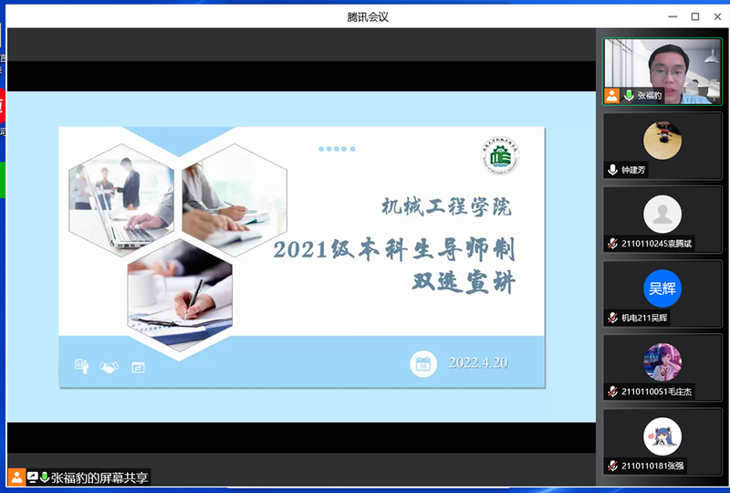 4月20日,机械工程学院召开2021级本科生导师双选视频宣讲会,启动新一轮本科生导师制工作。